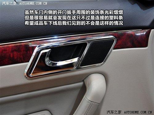 雖然車門內側的開門扳手周圍的裝飾條光彩熠熠,但是很容易就會發現在這只不過是連接的塑料條,希望成品車下線后我們見到的不會是這樣的情況。在車門上專門用于側窗玻璃除霜的出風口設計比較貼心,終于在我們自己的產品中看到了這種人性化度較高的設計。這個小出風口在車內外溫差較大時,玻璃上的霧氣對駕駛安全有很大影響,所以保持該區域內的清透非常有必要。