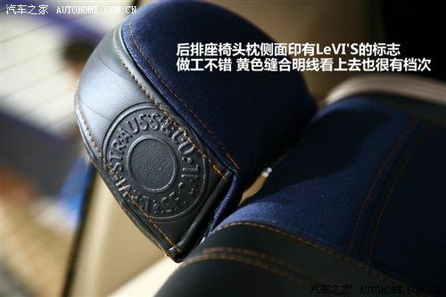 后排座椅的材質和前排相同,而且在頭枕上還有LeVI'S的商標圖案。比較顯檔次的是座椅上的黃色縫合明線,這上LeVI'S的牛仔褲上被廣泛應用,對這個品牌熟悉的用戶對此一定會感到很親切。
