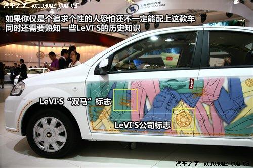 這款樂風的新車型是由通用雪佛蘭和國際知名牛仔褲制造商LeVI'S合力打造的一款限量版車型,白色的車身成了畫板,而車門上的大量牛仔褲圖案就像躍然紙上的涂鴉,相信這款車無論開到哪里都必然會引起路人的注意。而對于LeVI'S歷史有所了解的人一定知道,前門上的“雙馬”標志是最早出現在1886年的牛仔褲商標,也是現今歷史最悠久的服飾商標之一。可以說它的出現不僅僅是為了體現個性,更是一種文化的展示。