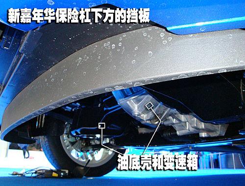 長安福特新建年華和廣豐雅力士相同,沒有設計發動機和變速箱下方的護板,不過前保險杠下緣突出的擋板同樣起到了發動機油底殼和變速箱底殼的第一道防線的作用。