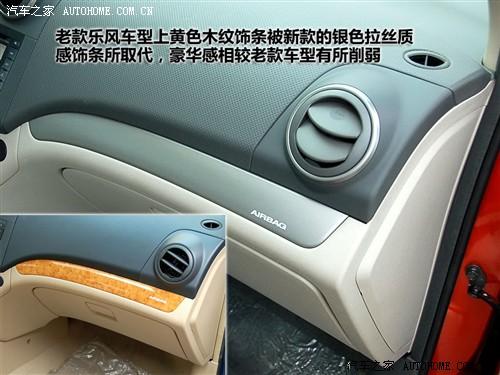 老樂風車型上所采用的黃色木紋內飾,無論做工還是顏色在同級車中算上乘的。相較而言,新樂風上的銀色拉絲飾條就顯得非常普通,雖然也沒有什么缺點,但至少沒有亮點。