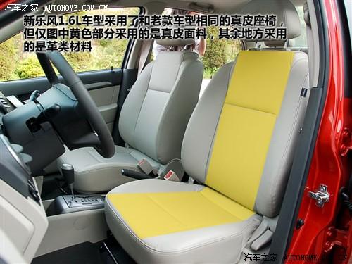 新樂風1.6L車型和老款一樣采用了真皮座椅,但嚴格意義上來時,該車的座椅僅在與體接觸部分采用了真皮,其余地方使用的皮革材料。不過總體的做工還算可以。