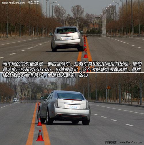 最后是最精彩的18米繞樁測試,說實話,新CTS的繞樁表現大大出乎我們的意料,因為我們對老款CTS的不安分表現現在還印象深刻。