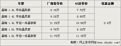 據(jù)記者了解,據(jù)記者了解,目前購(gòu)買斯柯達(dá)晶銳車型的車主可以享受到4000元的優(yōu)惠。晶銳1.4L低排量車型共分為手動(dòng)晶致版、手動(dòng)晶靈版和手自一體晶享版三個(gè)車型,經(jīng)優(yōu)惠后售價(jià)分別降為7.79萬元、8.89萬元及10.89萬元。晶銳1.6L車型共分為手動(dòng)晶靈版和手自一體晶享版兩個(gè)車型,經(jīng)優(yōu)惠后售價(jià)降為9.39萬元和11.39萬元。記者還了解到,斯柯達(dá)晶銳有一個(gè)特色的選裝車頂顏色的項(xiàng)目,可以把任意一款晶銳車型的車頂換成與MINI一樣的白色,換裝白頂?shù)膬r(jià)格為在原廠商指導(dǎo)價(jià)的基礎(chǔ)上多加1750元現(xiàn)金,欲選裝白頂?shù)南M(fèi)者需交1萬元訂金,約等2-6周后才可提車。