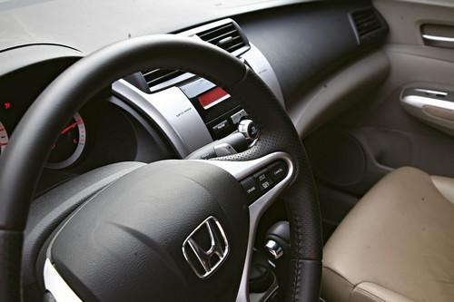 鋒范中控臺的樣式比較規整,各功能區域劃分明顯,一些常用的按鍵還被刻意放大,提升了實用性,但相比新飛度非對稱布局的中控臺要顯得中庸了不少。另外,變速器面板的樣式有很明顯的上一代車型的影子,而藍牙系統的位置如同第七代雅閣一樣被安置在駕駛員側的A柱上。