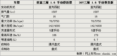 東風(fēng)雪鐵龍世嘉三廂1.6手動(dòng)舒適型和標(biāo)致307-1.6手動(dòng)舒適型都可以稱得上是該車款中的主力車型,兩款車型的定價(jià)相差了4000元整。在車身尺寸方面世嘉三廂車長(zhǎng)和車寬方面都要優(yōu)于標(biāo)致307尺寸。兩款車型的軸距均在2600mm左右,該尺寸在同級(jí)別車型中比較少見,完全可以滿足一般乘客的使用需求。307的車身高度達(dá)到了1526mm,這一點(diǎn)保證了其內(nèi)部高度的寬敞。標(biāo)致307的行李箱容積達(dá)到了620升,可以稱上是海量了,而世嘉三廂僅達(dá)到了481升。標(biāo)致307的前后輪距都要大于世嘉三廂,意味著標(biāo)致307操控性要優(yōu)越于雪鐵龍世嘉。