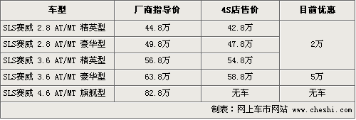 筆者從北京地區凱迪拉克經銷商處了解到,目前SLS賽威的優惠幅度有一定幅度的下降,其中2.8排量和3.6精英版優惠2萬元,3.6豪華版則優惠5萬元,F車顏色主要是黑色款,其他還需要預訂,但訂期時間較長。