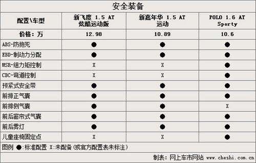 對于一款A0級的家用小車來說,安全性能是大家所關注的焦點,這方面我們列舉了大家最為關心的一些配置進行對比。通過對比可以發現,POLO Sporty的主被動安全裝備都更充分一些,但該車的不足在于被動安全方面沒有加裝側面的安全氣簾。