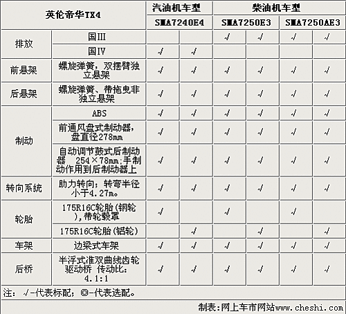 英倫TX4的柴油版只達到國Ⅲ的排放標準,而汽油版車型卻達到了國Ⅳ排放標準。這款車型采用雙擺臂獨立前懸架,拖曳臂非獨立后懸架,制動系統采用前通風盤式,后鼓式制動器。TX4采用175R16C的輪胎,不過低配車型卻只配備鋼輪轂。