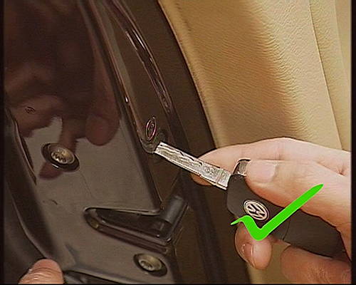 兒童門鎖開關設置在車輛左后、右后車門側壁鎖舌下方。打開兒童鎖開關后,車門將只能從外側打開。這樣可以防止車輛行駛中兒童在車內自行打開車門,造成危險。