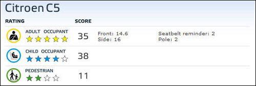 總體看來,C5對成年人保護出色獲得5星評價,對兒童保護也比較優秀獲得4星評價,對于行人保護相對較差,僅獲得2星。