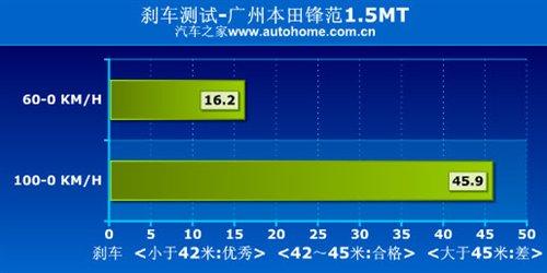 另外,還有一點需要提醒,就是經過我們的測試鋒范1.5MT舒適型的剎車成績很差,45.9米的剎車成績除了本身制動系統不夠強以外,前面提到的輪胎因素也不可忽視。因此,如果考慮到安全性,不妨更換大一號的輪胎,雖然加速力也會同時受到影響,但畢竟安全才是第一。