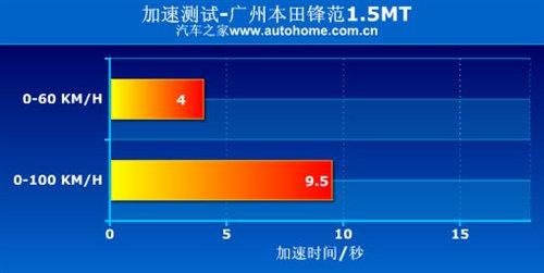 記得當初測鋒范1.5手動擋的時候,我們都曾經為這個成績感覺到驚訝。以鋒范的體積和重量來看,1.5排量的發動機能達到這個成績可以說相當出乎意料。雖然說這里面有一個不可排除的因素是這款車型配備了175/65 R15的窄胎,但能進入10秒內證明加速能力確實比較強。