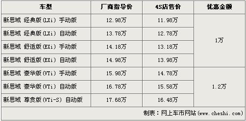 據東風本田經銷店銷售人員介紹,目前新思域全系最高優惠1.2萬元。新思域分為經典版、舒適版、豪華版及尊貴版4種共7款車型。經典版和舒適版車型有1萬元的優惠,經優惠后入門級的經典手動版售價從原廠商指導價12.98萬元降到了11.98萬元。豪華版和尊貴版車型優惠1.2萬元,經優惠后全系最高配的尊貴版車型跌破了17萬元,售價降到了16.48萬元。銷售人員還介紹,目前全系手動版現車緊張,錯過店內現車的消費者需交訂金1千元,本月月中可提車。