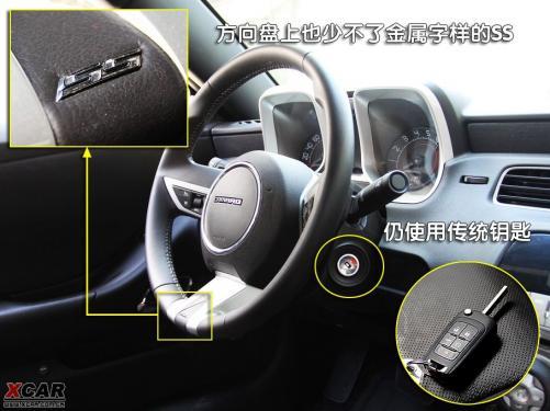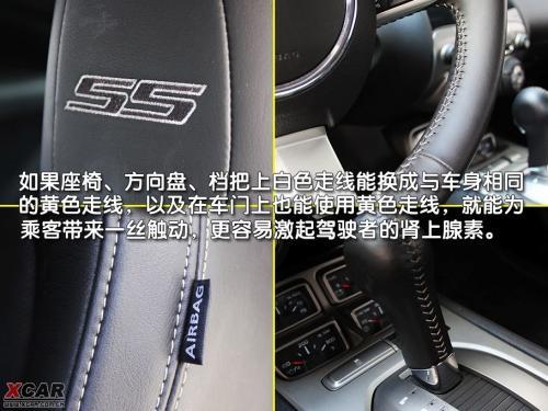 運動設計的三幅式方向盤造型給人力量感,銀色的裝飾很好地提升了這一效果,當然上邊也少不了金屬字樣的SS,同時在方向盤后邊還可以看到采用左減右加式的方向盤換檔撥片。只是尺寸過大的方向盤,實在讓人感覺有些不易操控,對于大多數美國轎車來說,大號的方向盤似乎已經成為了傳統,一時很難改過來。