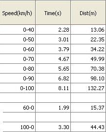 同樣在剎車測試時,205輪胎還是拖了后腿,抓地力實在有限。最終剎車的平均成績是44.4米,這已經(jīng)是能接受的極限了。如果換上大一號的輪胎,剎車成績能提高到42米左右就比較理想了。