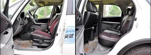 首先說說SX4較高的駕駛坐姿,個人感覺很適合這類Cross車型的特點,視野開闊、方便輕松駕駛。其次,這款運動版車型的座椅采用了雙色雙材料設計,視覺效果不錯,且支撐性和包裹性都令人滿意。前排側向的支撐較硬,坐墊角度合適,個人認為長時間駕駛帶來的疲勞程度在可接受的范圍內。