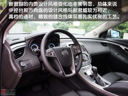 同外觀的脫胎換骨一樣,新君越的內飾設計風格變化也非常明顯,總體來說中控臺和方向盤的設計風格與新君威較為相近。寬大的中控臺采用環抱式設計,淡藍色的背景光以及中控臺按鈕的布局都是我們熟悉的元素。