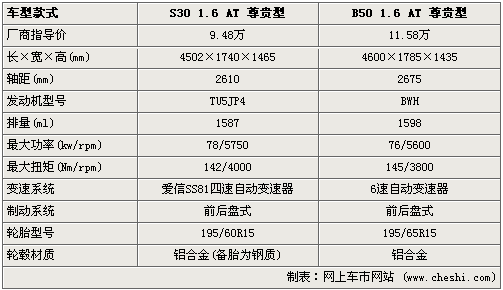 在動力方面,兩者采用了同樣的方式-從合作方引入動力,只不過一汽選擇的大眾的BWH 1.6L發(fā)動機,而風神S30則選擇來自標致雪鐵龍的N6A 1.6L動力,最大功率N6A稍強、而扭矩方面當然大眾更厲害些,不過兩者都為1.6L動力可以享受購置稅的優(yōu)惠。而在自動變速器的匹配上,B50的6速自動變速器無疑優(yōu)勢明顯。