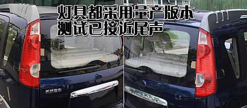 哈弗M1的尾燈組合雖然只是簡單固定在車身,但燈具都采用了量產版本,整車的測試已接近尾聲。在動力上,這款迷你型的哈弗M1 SUV搭載1.3L發動機,配合5速手動變速器,最大輸出功率為65kw,最大扭矩為115N•m。