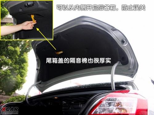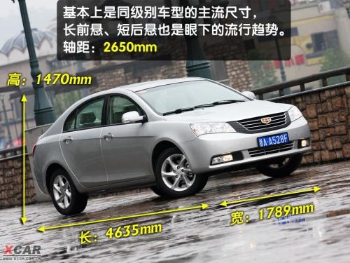 以黑色塑料為主的百葉窗風(fēng)格進(jìn)氣格柵很有特點(diǎn),個(gè)人感覺和以方塊為基調(diào)的盾形車標(biāo)搭配恰到好處。頭燈和尾燈都是眼下最流行的造型,雖然依稀還有些模仿的影子,但是整體效果不錯(cuò)。如果把帝豪車標(biāo)擋住的話,真的很難想到這是一臺吉利車。美中不足的是霧燈的設(shè)計(jì)有些單調(diào),如果能配合頭燈造型做得更精致的話,整個(gè)前臉會更出彩。