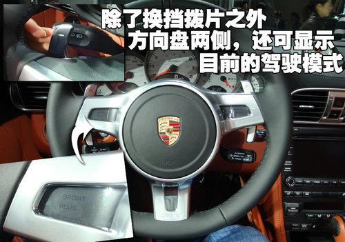 配備PDK雙離合變速器的2010款保時捷911 Turbo敞篷版,可以通過選裝帶有換檔翹板開關的新款選裝三輻方向盤取代帶有傳統換檔按鈕的標準方向盤。換檔翹板開關牢固安裝在方向盤上,右側的翹板開關用來升檔,左側的翹板開關用來降檔。