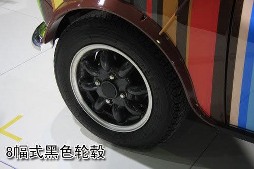 8幅邊的黑色輪轂與外形一樣可愛無(wú)比,周圍的一圈銀色另輪轂看起來運(yùn)動(dòng)了不少。