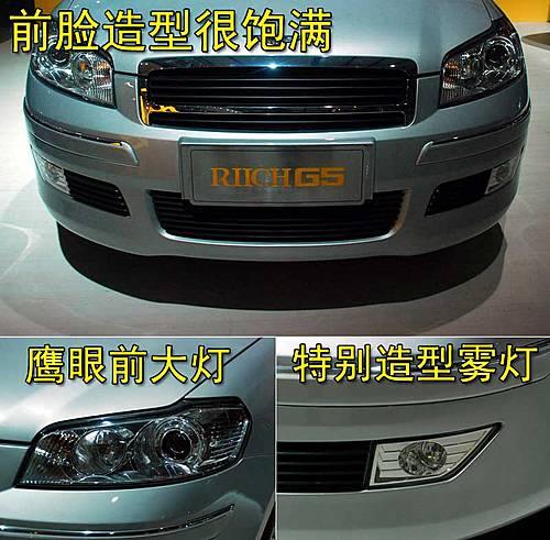 瑞麒G5具有潮流感極強的商務運動外型設計,長方形的鍍鉻裝飾進氣格柵,使整個前臉看上去更具幾分侵略性。前大燈采用鷹眼式設計,霧燈的造型比較特別。