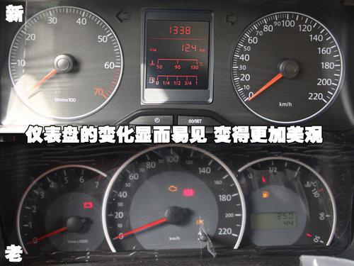 新老捷達內(nèi)飾最大的變化莫過于這臺組合儀表,將行駛里程、水溫表及油量顯示集中在一塊液晶屏中,看著漂亮、使用也很方便。溫度表在50度及90度及130度有標注,90度為捷達發(fā)動機正常工作溫度值,如果到130度就提示已出現(xiàn)故障了。油表共分為4個刻度,可以時刻告訴駕駛員油量的變化。新款捷達將轉(zhuǎn)速表與速度表左右對稱分開,更符合現(xiàn)代汽車設(shè)計觀念。