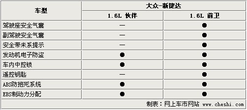 全新捷達雖然冠上全新二字,但消費者仍然不會對捷達的配置有非常大的興趣。對于這樣一款進行過幾次改型的老車型,配置方面不會有太大變化。在1.6L前衛車型上,標配了前駕駛員與副駕駛安全氣囊,,保證了前排乘員的安全。駕駛員一側的安全帶帶有未系提示,時刻提醒駕駛員保證自身安全。全系標配的配置還有電子防盜系統、車內中控鎖及ABS+EBD系統。1.6L伙伴并沒有裝備安全氣囊,配置較低。