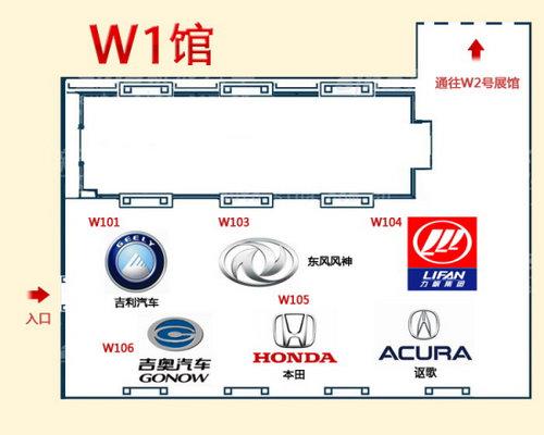 在本屆北京車展,W1館有吉利、東風風神、力帆、吉奧、本田、謳歌等6個品牌參展。主要亮點車型包括東風風神S30 BSG、吉奧GS-2、力帆首款SUV、本田雅閣Crosstour、謳歌TSX運動旅行車以及吉利眾多車型等。