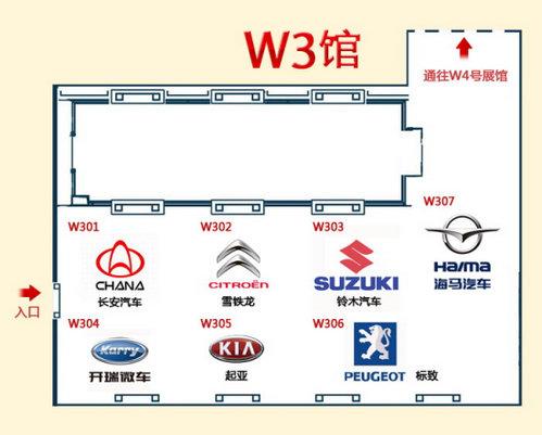 在本屆北京車展,W3館有東風悅達起亞、鈴木、長安汽車、雪鐵龍、標致、海馬汽車、開瑞等9個品牌參展,主要亮點車型包括東風悅達起亞新遠艦、鈴木Kizashi、雪鐵龍Survolt概念車、雪鐵龍DS3、標致508概念車以及海馬騎士等。