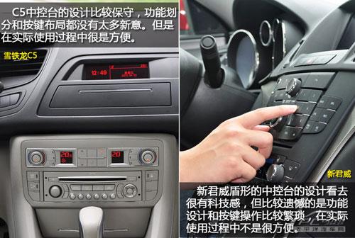 由于此次對比的車型是新君威2.4L 旗艦版和雪鐵龍C5 2.3L尊雅型,所以在有些配置上C5要低于新君威,這是可以理解的必定有價格的差別。