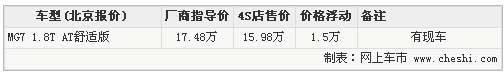 據名爵汽車4S店銷售人員介紹,目前北京地區MG7車型的現車并不充足,只有1.8T舒適版手自一體車型有現車,其他車型暫無現車,如有意向購買需要預訂,訂金為5000元,預計提車時間為一個月左右。購買有現車的1.8T舒適版手自一體車型可以獲贈價值1萬5千元的大禮包,其中包括8000元的現金優惠和7000元的裝飾贈送。