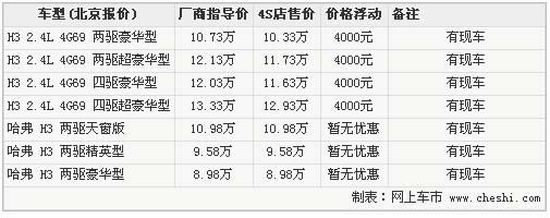 據長城汽車4S店銷售人員介紹,長城哈弗H3的現車都比較齊全,并且出現了一定的優惠幅度。但相比前幾個月,優惠幅度卻有所減少,目前購買哈弗H3 2.4L都可以優惠4000元。另外銷售人員表示,長城哈弗H3的廠商指導價只是白色普通漆車型,金屬漆其他顏色車型需要加價2000元。