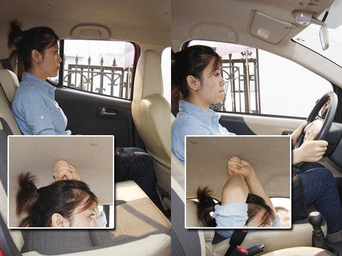 上圖的空間展示者身高不超過170cm,我們可以很清楚的看到,她在車內的前排的座位上,奧拓給予她的空間還是很充足,而后排頭部空間方面,對于她的身高來說,只能說是夠用而已。