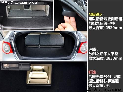 而在后備廂其他的實用性方面。馬自達6仍然很出色,它的后備廂離地和開口都最低,這樣取放行李時最方便,而且可以在后備廂內部直接放倒后排座椅;速騰的液壓挺桿在緊湊型車中并不多見,而軒逸在這里仍然沒有什么優勢。