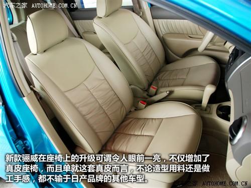 得益于類似MPV造型的車身設計,驪威在同級別車型中的空間表現已屬不錯,身高為1.75米的乘客調整到合適的駕駛位置,頭部和腿部都沒有絲毫的壓抑,尤其是出色的頭部空間更是在小型車中出類拔萃,而且2010款車型升級后的真皮座椅非常舒服,乘坐舒適也是日產家族的一貫特色。