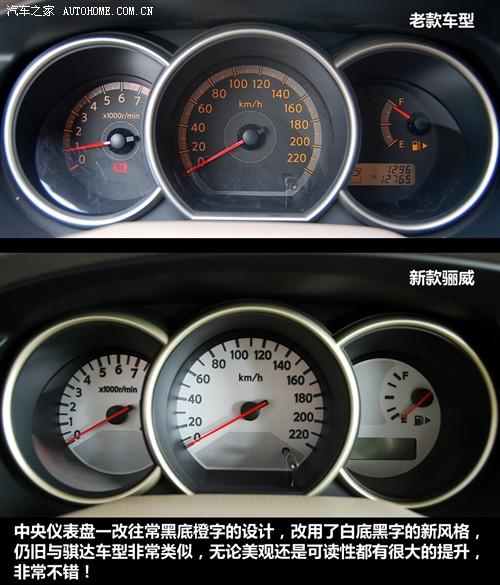 2010款驪威在內飾上沒有變化,日產的家居化風格的內飾在驪威上也有所體現,畢竟作為低端車型,相對于騏達和軒逸等車型還是顯得比較樸實,儀表是新款驪威改進的重點,白底黑字的顯示方式無疑更加清晰,頂配車型的無鑰匙啟動系統、自動頭燈、電動天窗、倒車雷達等也為其增加了競爭力,價格為11萬多一點,對這款大空間的合資小型車來說還是可以接受的。