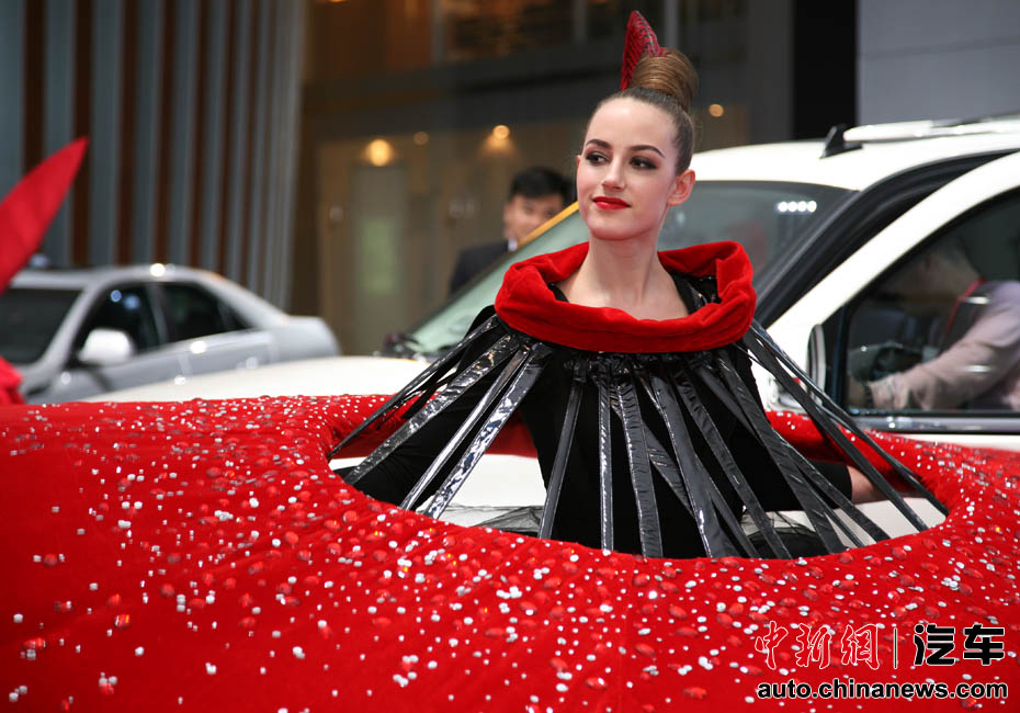 “第十一屆北京國(guó)際車展”是名車新品搶先亮相的舞臺(tái),也成了車模們爭(zhēng)奇斗艷的場(chǎng)所,參觀者在車展中可以享受兩道視覺大餐。王崢 攝