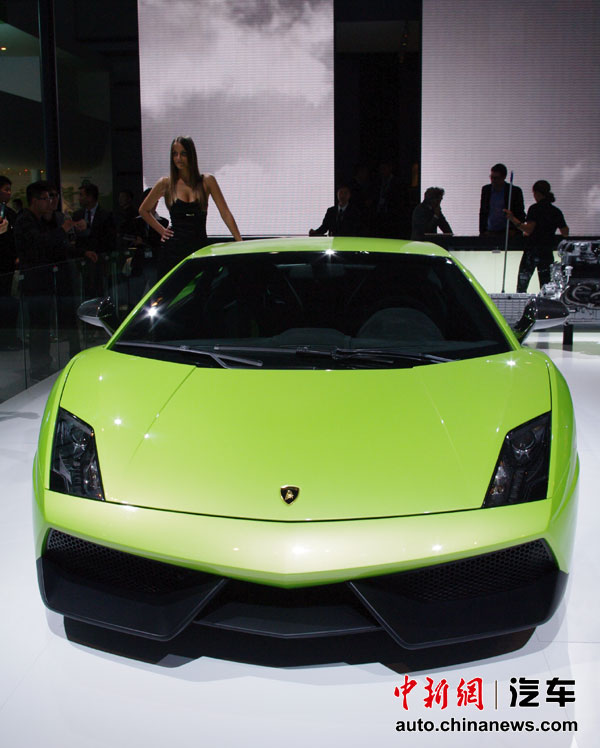 在人流如織的海外汽車巨頭的展館里,天價豪車成了當仁不讓的最搶眼明星,相形之下即使再靚麗的車模也黯然失色。圖為蘭博基尼Gallardo LP 570-4