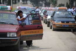 6月23日,臨汾市一天然氣站,出租車(chē)司機(jī)推著車(chē)挪動(dòng)位置,等待加氣。