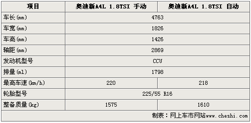 另據4S店相關人士表示,國產奧迪新A4L 1.8TSI最早將于8月份上市,但現車到店估計要到10月份左右。國產奧迪新A4L不僅加大了車身尺寸,而且通過前后50:50重量分配等改進進一步提升了整車操控與運動性,更加符合國人的個性需求。