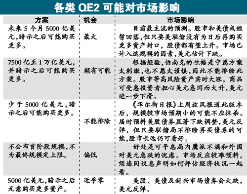 QE2已在市場(chǎng)討論兩個(gè)月,但這個(gè)舉措史無前例,效果無人知曉,甚至連聯(lián)儲(chǔ)局官員也明顯對(duì)本周應(yīng)推出多大規(guī)模的QE2仍心中無底。
