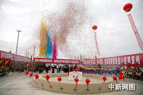 十二日上午,中國首條城郊快速鐵路金山支線鐵路在滬開工,金山鐵路支線的建設對上海市推進城鄉一體化具有重要意義。圖為奠基儀式現場。
