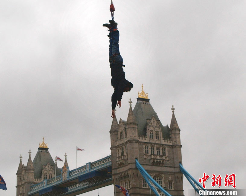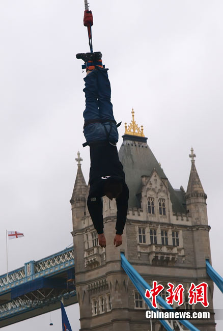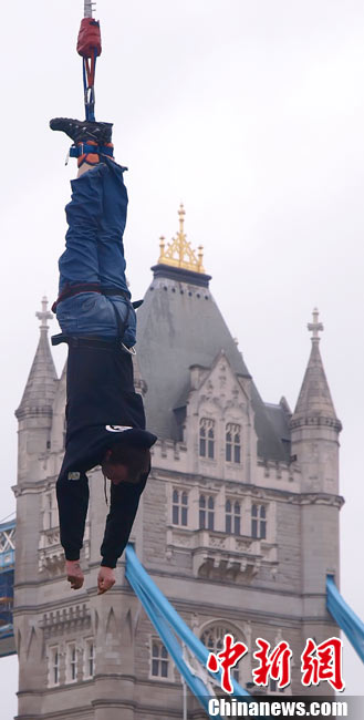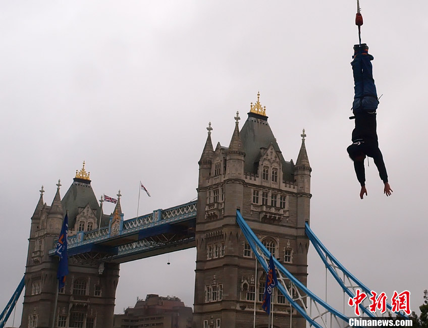 9月26日,英國(guó)倫敦,一位名叫James Field的男子在一個(gè)小時(shí)內(nèi)完成了42次蹦極跳,打破世界紀(jì)錄。