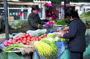 11月26日,宣武區粉房琉璃街,居民在菜市場買菜。本報資料圖片 李飛 攝 (來自新京報)