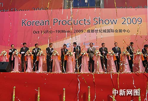 大韓貿(mào)易投資振興公社趙喚益、四川省省長蔣巨峰等出席了儀式并剪彩。