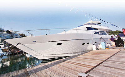 西貢匡湖游艇會(huì)昨日起舉辦為期4日的“國(guó)際游艇展”,有來(lái)自臺(tái)灣、法國(guó)、英國(guó)和美國(guó)等共59個(gè)參展商,展出逾百艘游艇,并有附設(shè)釣魚塔的游艇,展品總值約6億元。匡湖游艇會(huì)總經(jīng)理吳宛湄表示,隨著經(jīng)濟(jì)好轉(zhuǎn)及不少內(nèi)地買家來(lái)港選購(gòu)游艇。