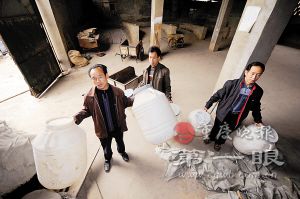 老熊家里弄了5個酒窖,以前每個月能生產5000多公斤白酒。今年卻已經停產3個多月,酒曲堆放在屋角,酒池蒙上了一層細灰。他說:“5個酒窖如果全部開工,每天需要大約2噸水。以前泉水和自來水都很充足。現在泉水基本干涸了,自來水也得不到保證,所以春節后酒廠就停產,不曉得什么時候能開工。”